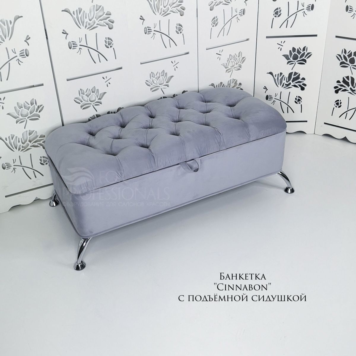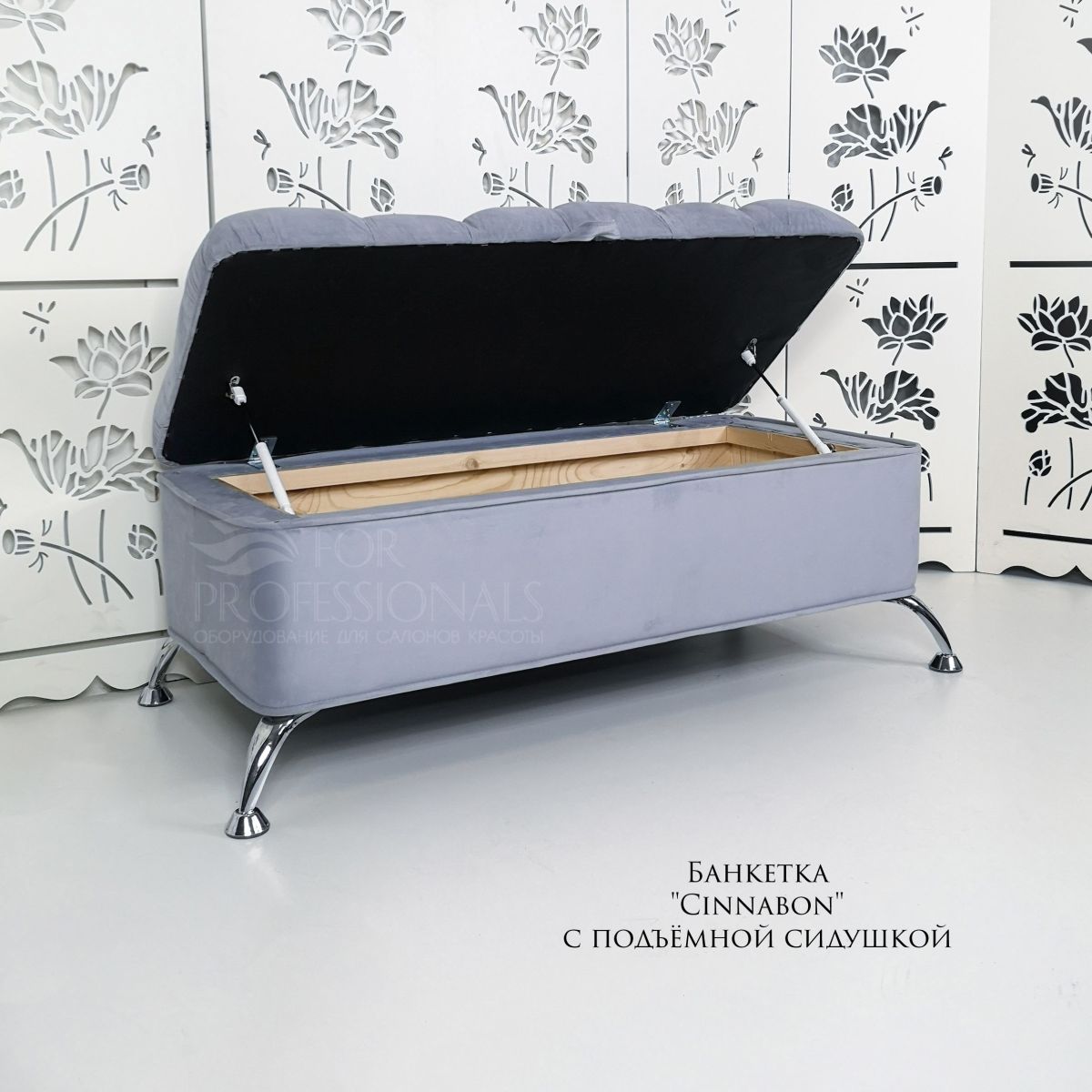 Читать все статьиБанкетка «Cinnabon» 450х1100х500 с поднимающейся крышкой велюр Серый