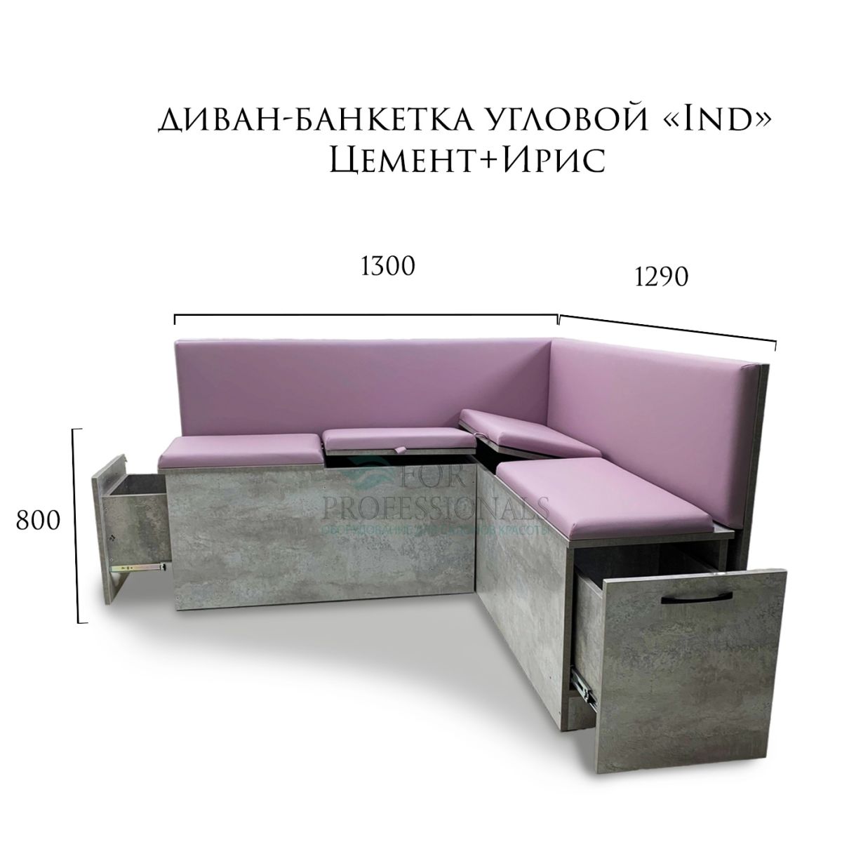Угловой диван-банкетка с ящиками для хранения. Ирис+ цемент: