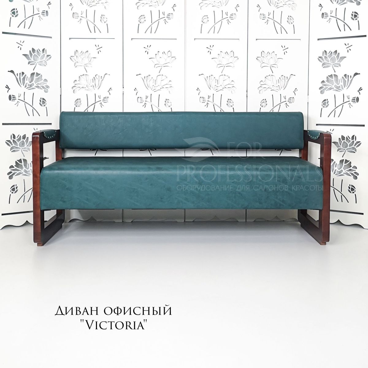 Стильный диван Виктория для настоящих победителей! Плотная экокожа, декоративные металлические клёпки и лакированные деревянные подлокотники.