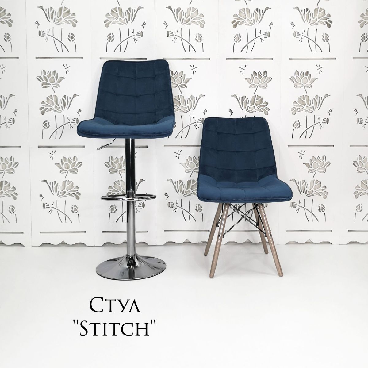 Читать все статьиКаркас стула «Stitch клетка» велюр синий