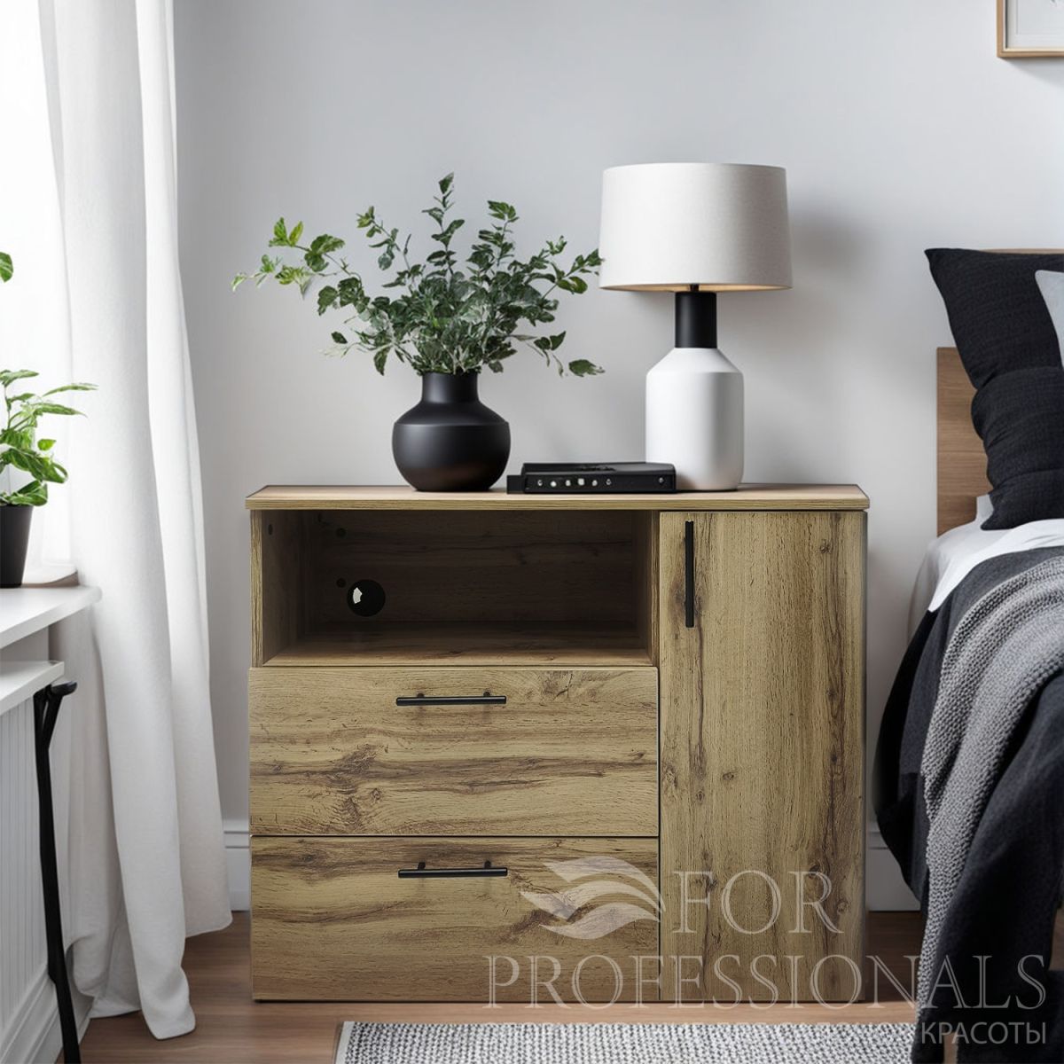 Преображайте свою комнату с нашим стильным и удобным комодом! Этот небольшой комод с двумя выдвижными и одним распашным ящиком с двумя вместительными полками идеально подойдет для хранения одежды, белья или других вещей.
