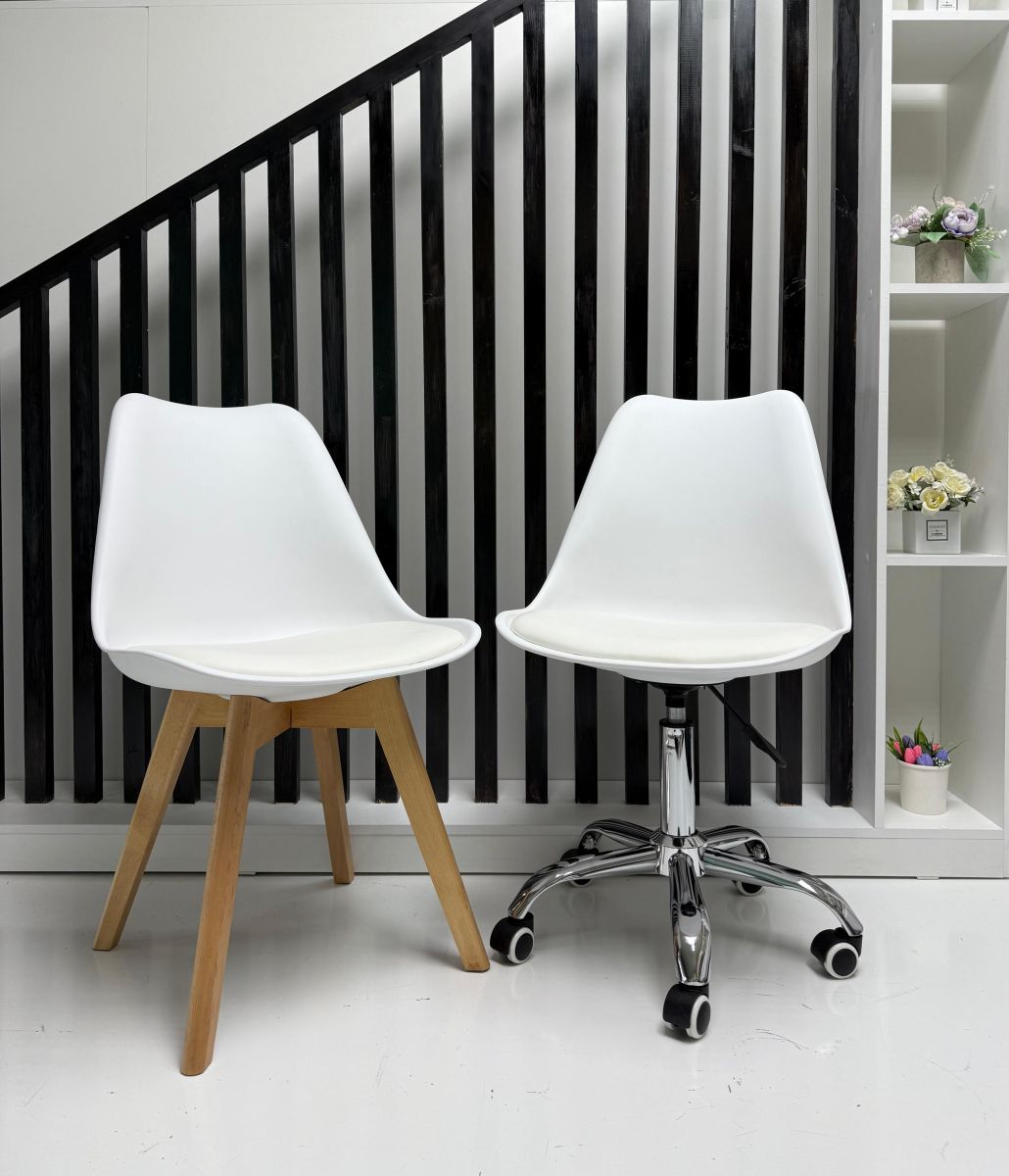 Читать все статьиКомплект стульев мастера и клиента «Eames Soft» белый