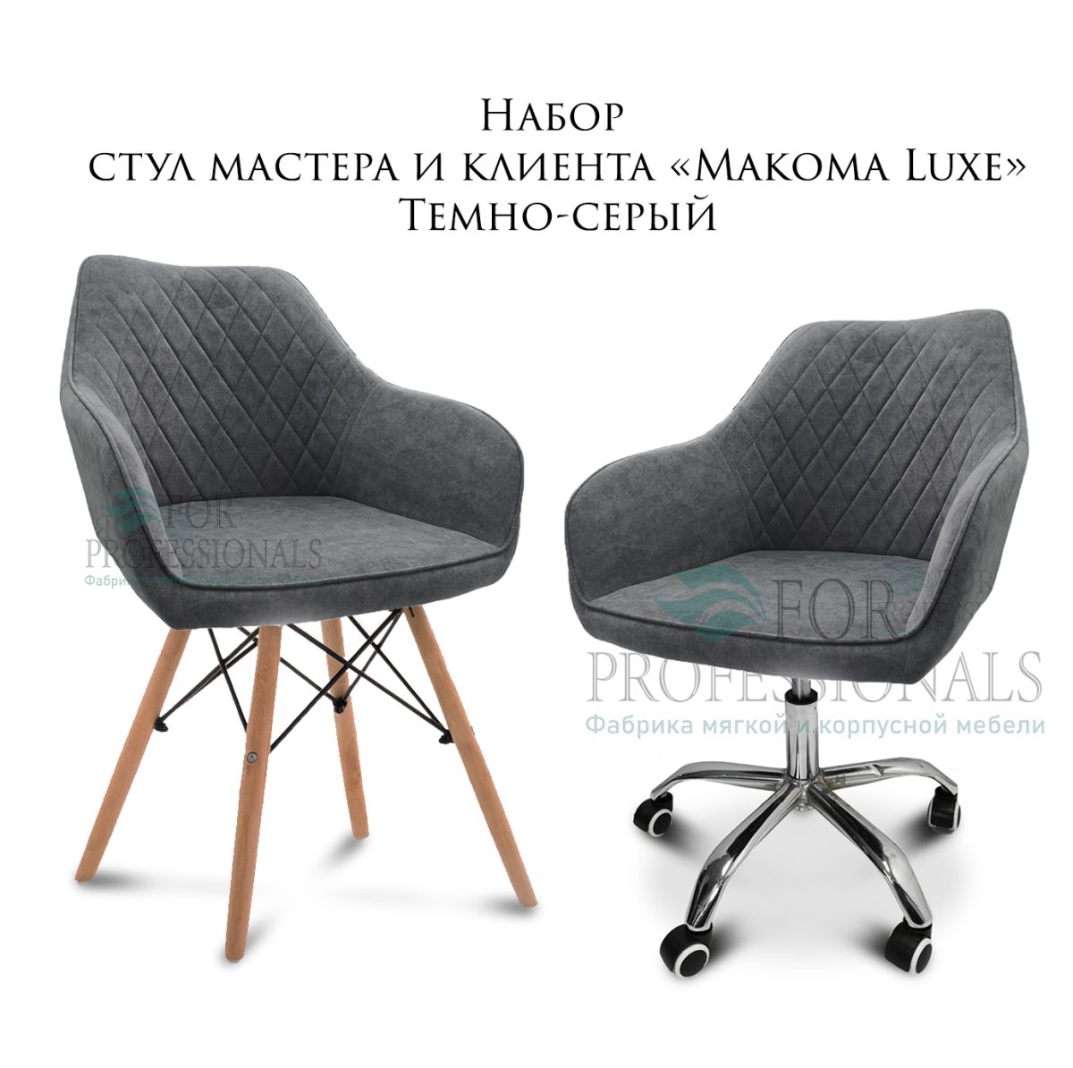 Читать все статьиКомплект стульев мастера и клиента «Макома Luxe» темно-серый