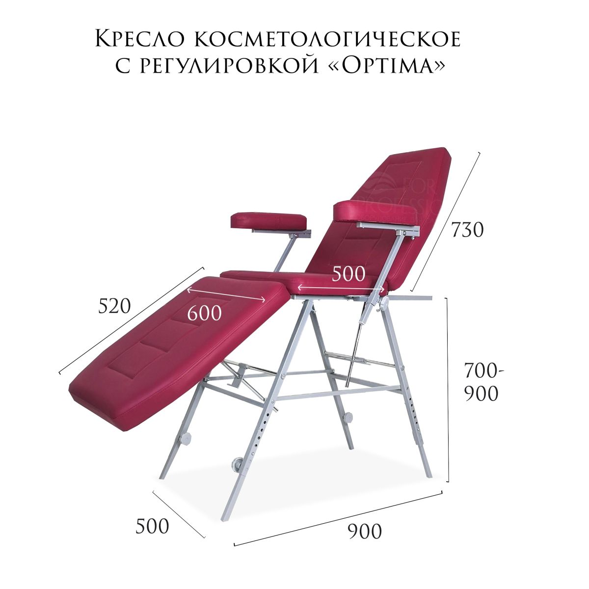 Наши косметологические кресла с регулировкой высоты «Optima» - оптимальный выбор мастера! Можно настраивать высоту ножек, а так же регулировать угол наклона спинки и подножки, трансформируя кресло в лежанку - всё для комфорта клиента и удобства мастера!