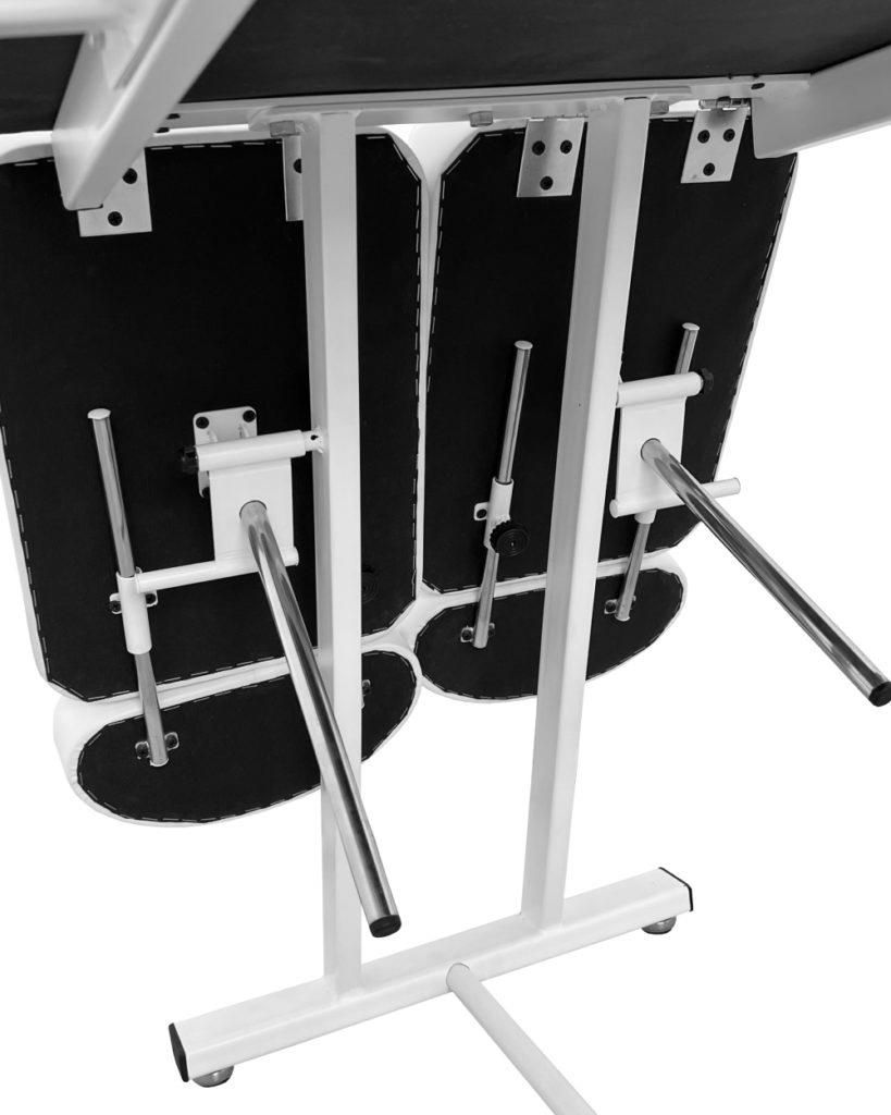 Мягкое кресло имеет устойчивый каркас из металлического профиля. Изделие покрыто порошковой краской, предотвращающей появление коррозии. Швы у материала прочные и аккуратные. Сам педикюрный стул имеет толстый слой поролона — 6 см. Такой наполнитель делает его комфортным для клиентов даже при долгом сидении.
