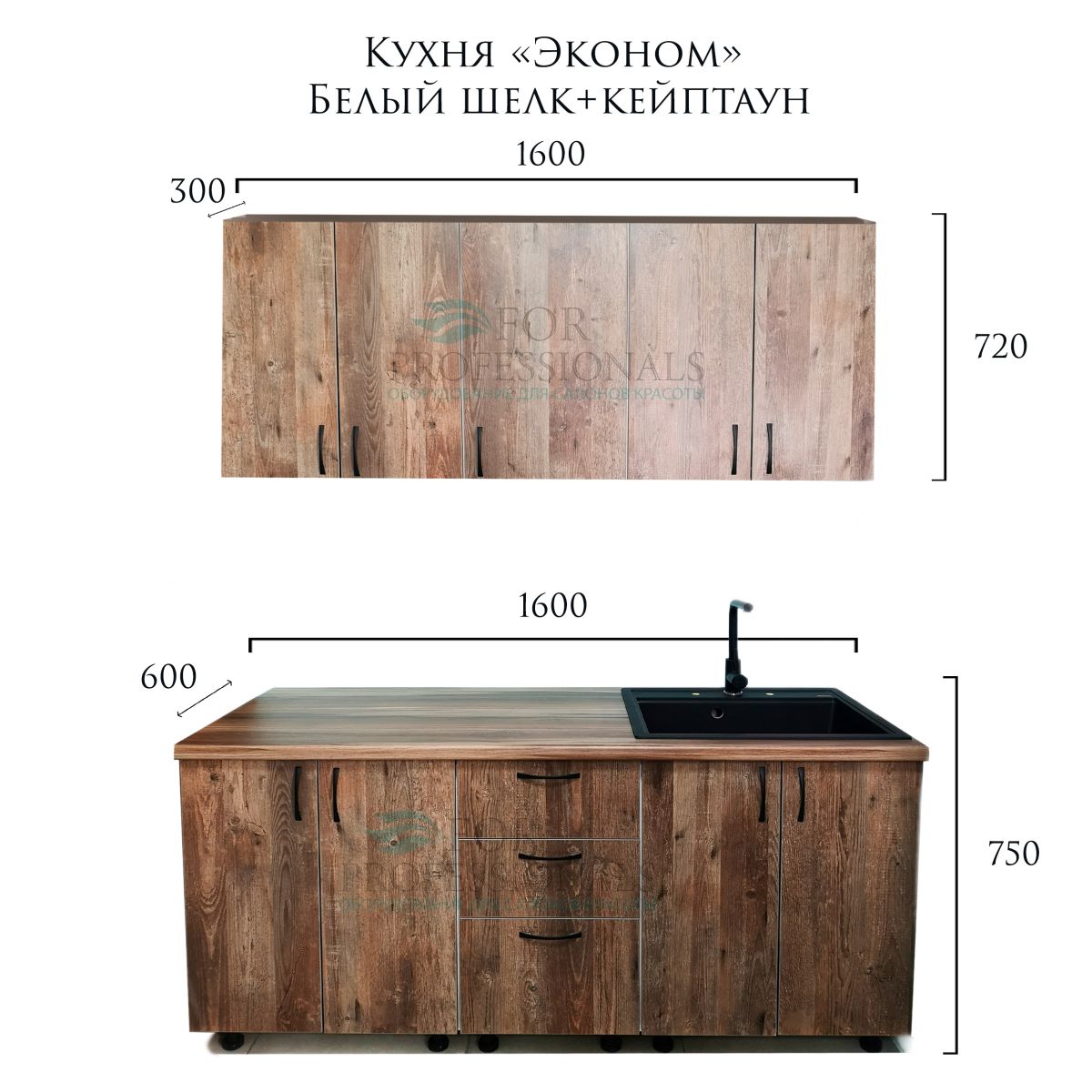 Кухня "Эконом" Кейптаун+белый шелк: