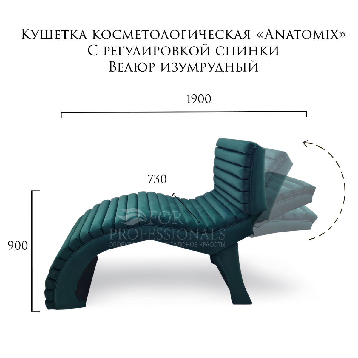 Читать все статьиКушетка косметологическая «Anatomix» с поднимающейся спинкой велюр изумрудный