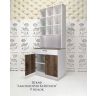 Компактный, но вместительный шкафчик приятной цветовой комбинации, девять открытых полочек-ячеек, выкатной ящик и полочки за дверцами!