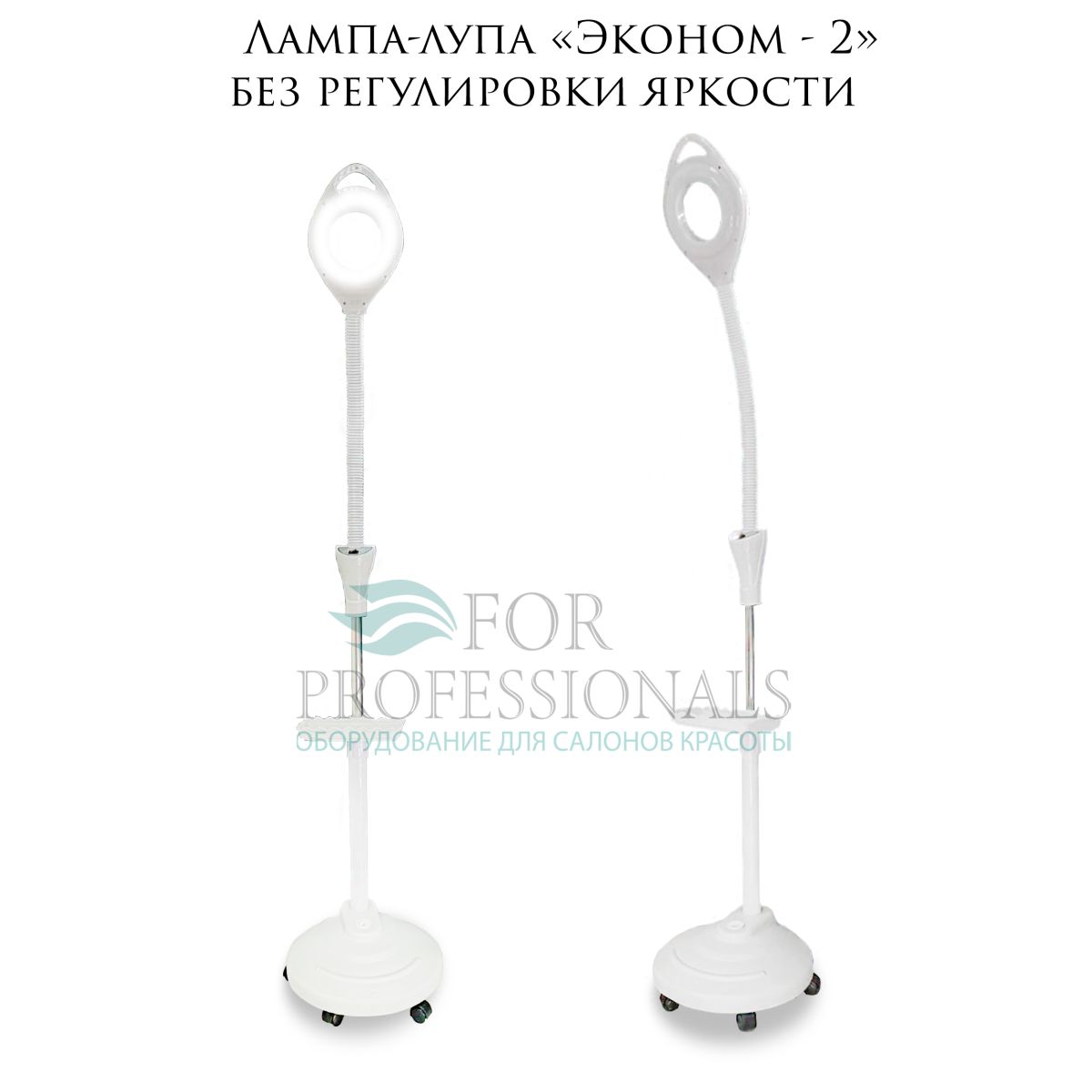Лампа-лупа «Эконом-2» без регулировки яркости снабжена гибким штативом и может изгибаться под самыми немыслимыми углами, упрощая специалисту задачу создать безупречный облик клиента! Для устойчивости в полое основание лампы наливается вода, или насыпается песок. Так же к штативу крепится свободно вращающаяся полочка с бортами, а для мобильности самой лампы-лупы, она снабжена колёсиками.