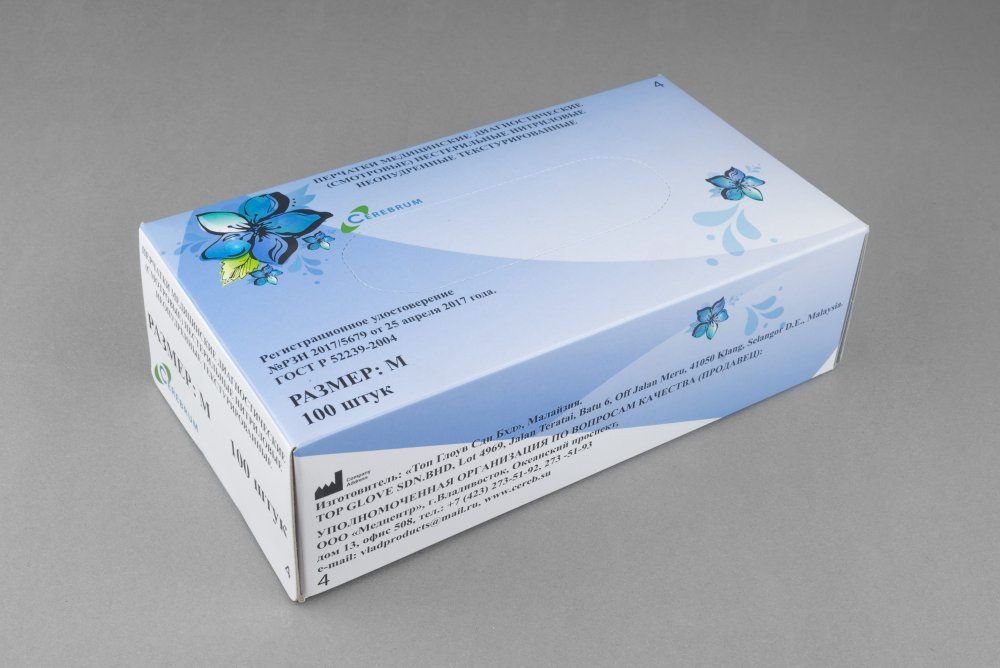 Читать все статьиПерчатки нитриловые голубые 3гр «Cerebrum» размер S 50шт