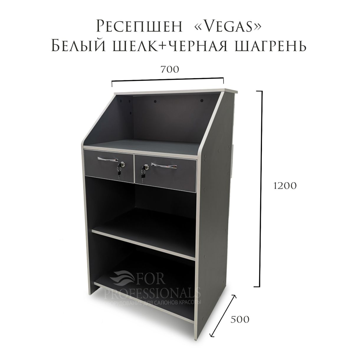 Читать все статьиРесепшен «Vegas» Белый шелк+черная шагрень700х500х1200