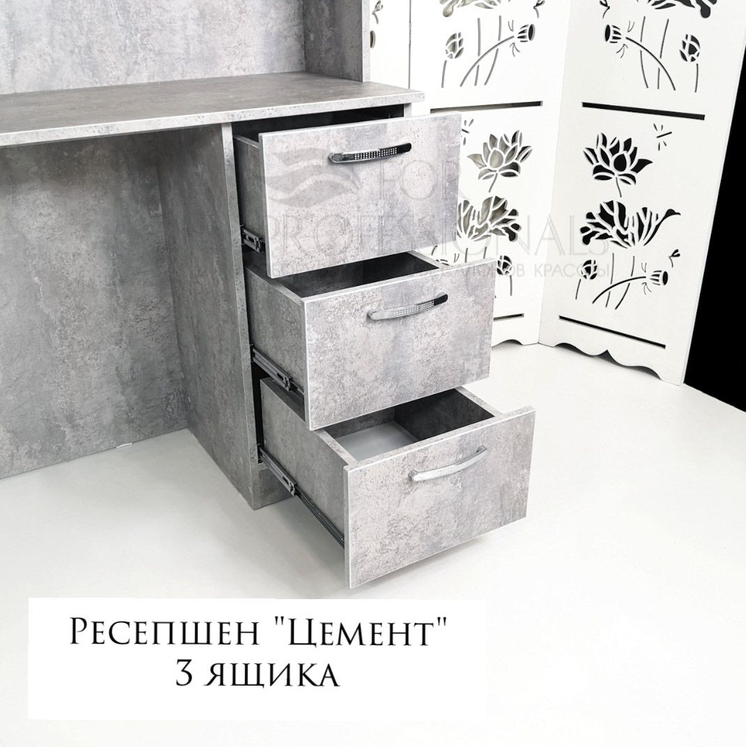 Небольшая, но удобная столешница, три вместительных ящика, дополнительная верхняя полочка - просто и со вкусом.