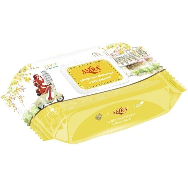 Читать все статьиСалфетки влажные «AMRA» освежающие Rome (120 штук)