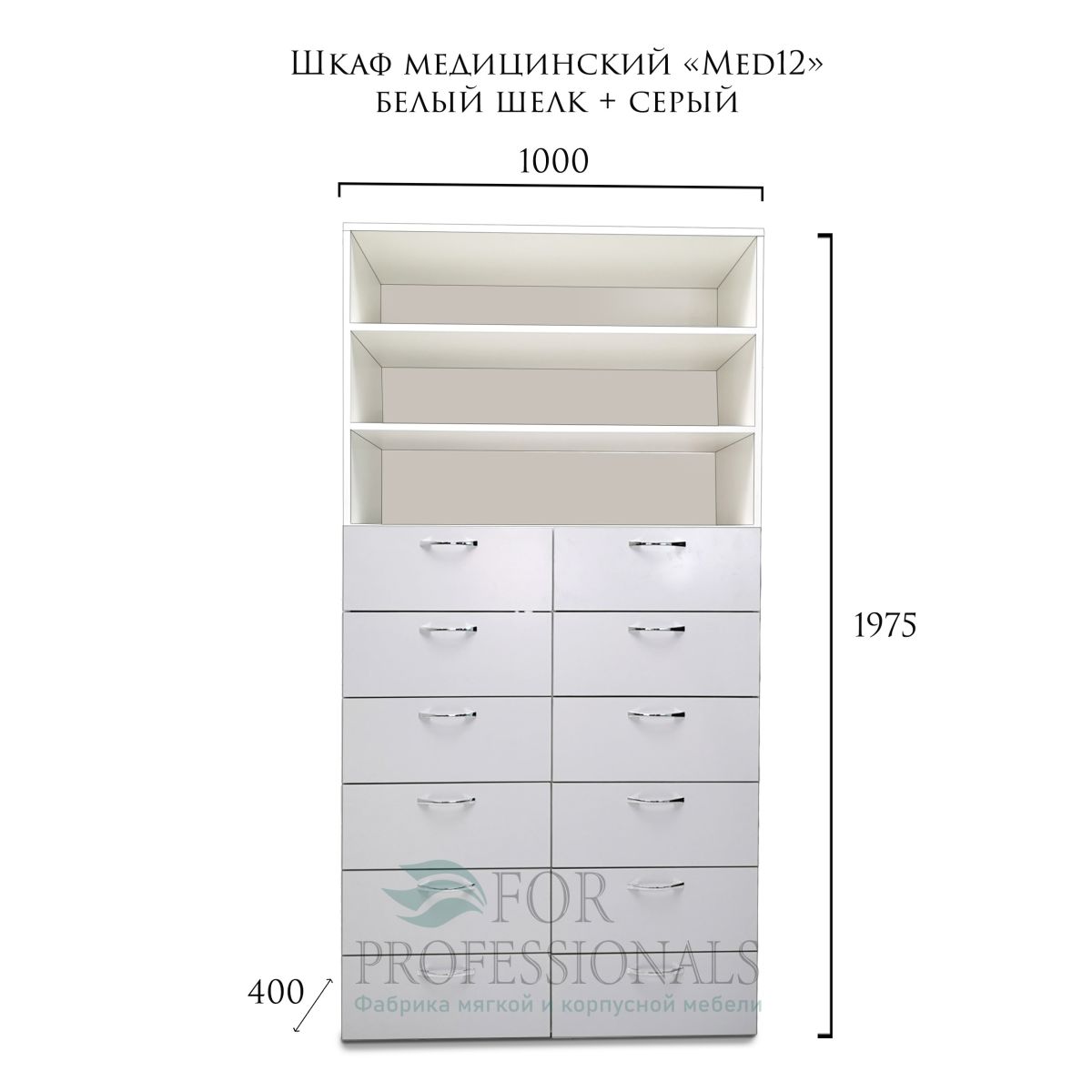 ✅Шкаф медицинский "Med12" белый шелк+серый: