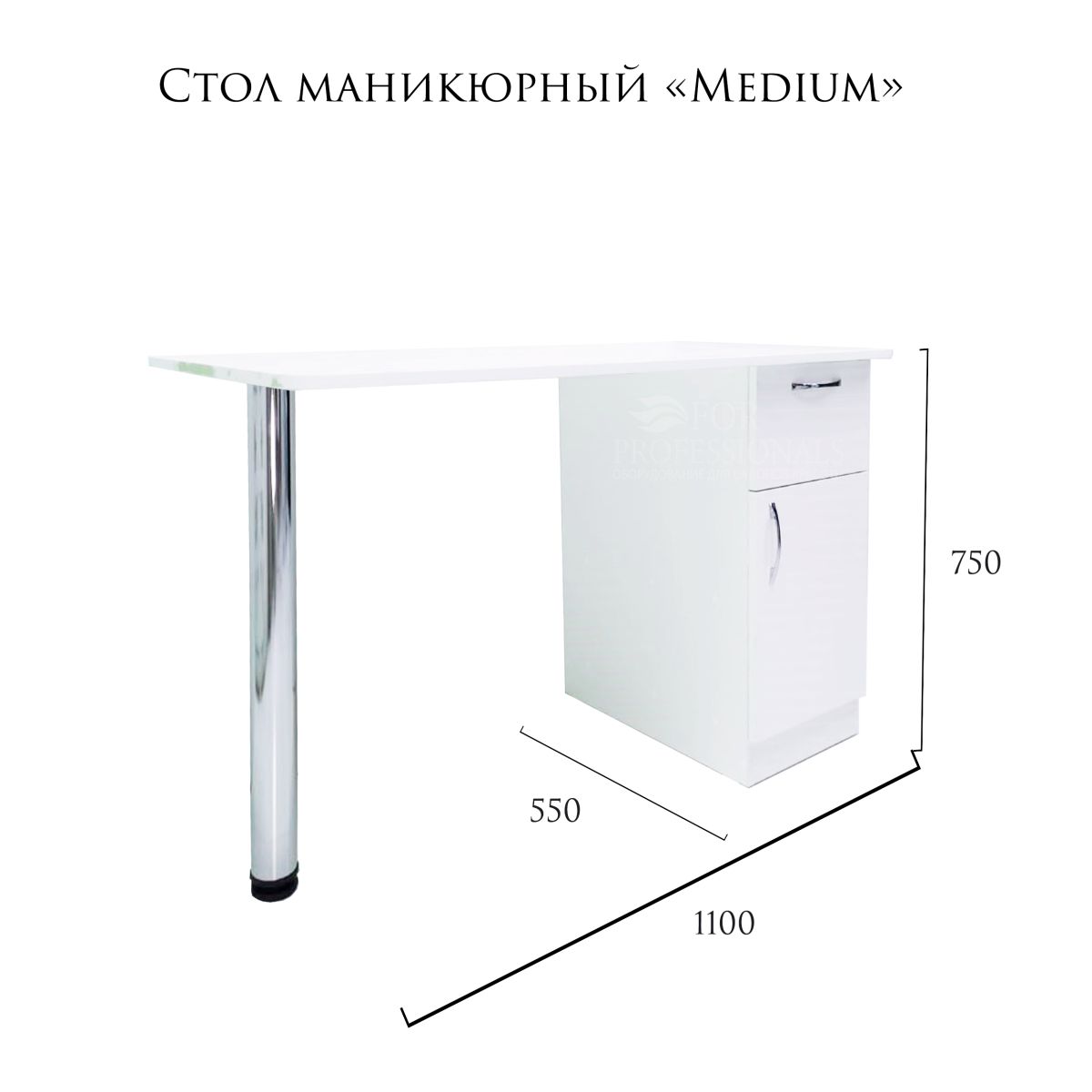 Наш стол «Medium» станет идеальным решением для организации рабочего пространства мастера маникюра. Данная модель очень вместительна и позволяет удобно разместить все необходимые материалы и инструменты, чем даёт возможность сохранить порядок.