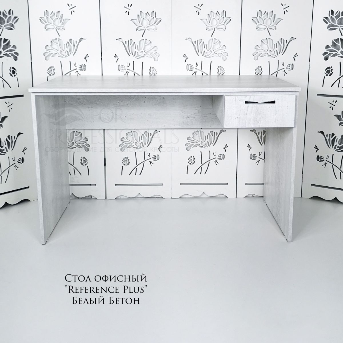 Читать все статьиСтол офисный «Reference Plus» с ящиком Бетон белый