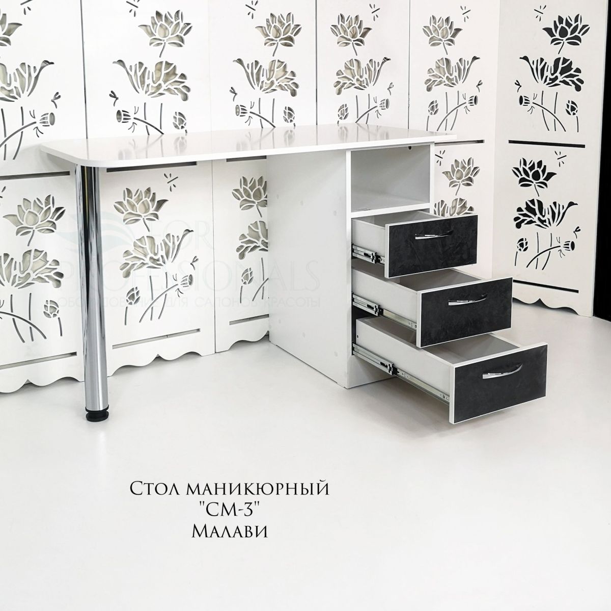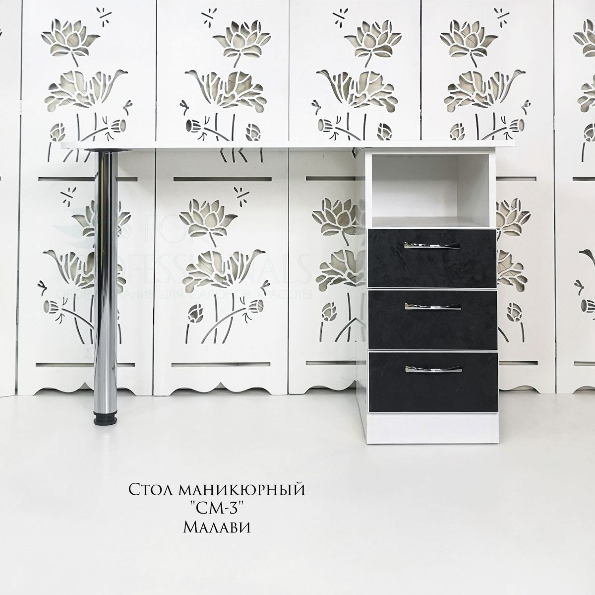 Читать все статьиСтол «СМ-3» 750*1100*550 белый шелк+малави