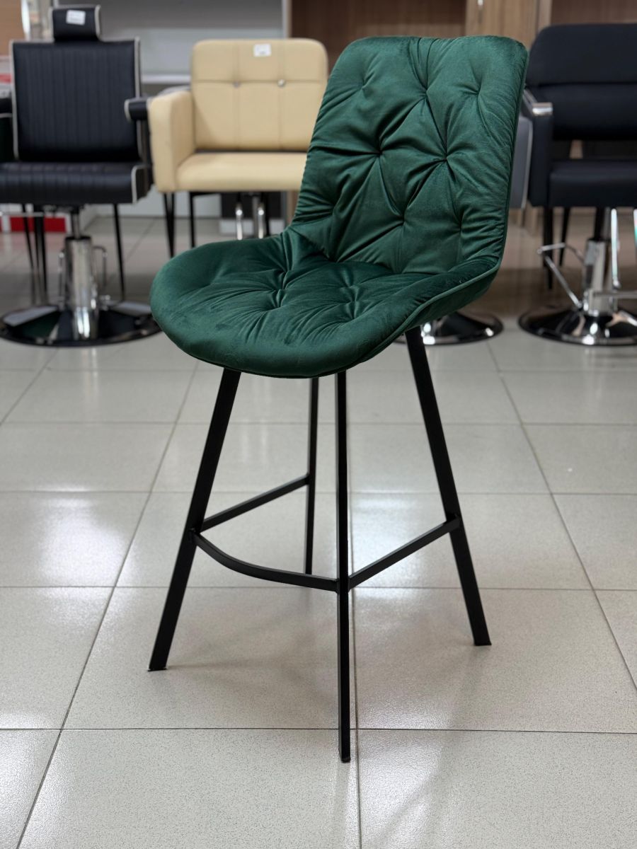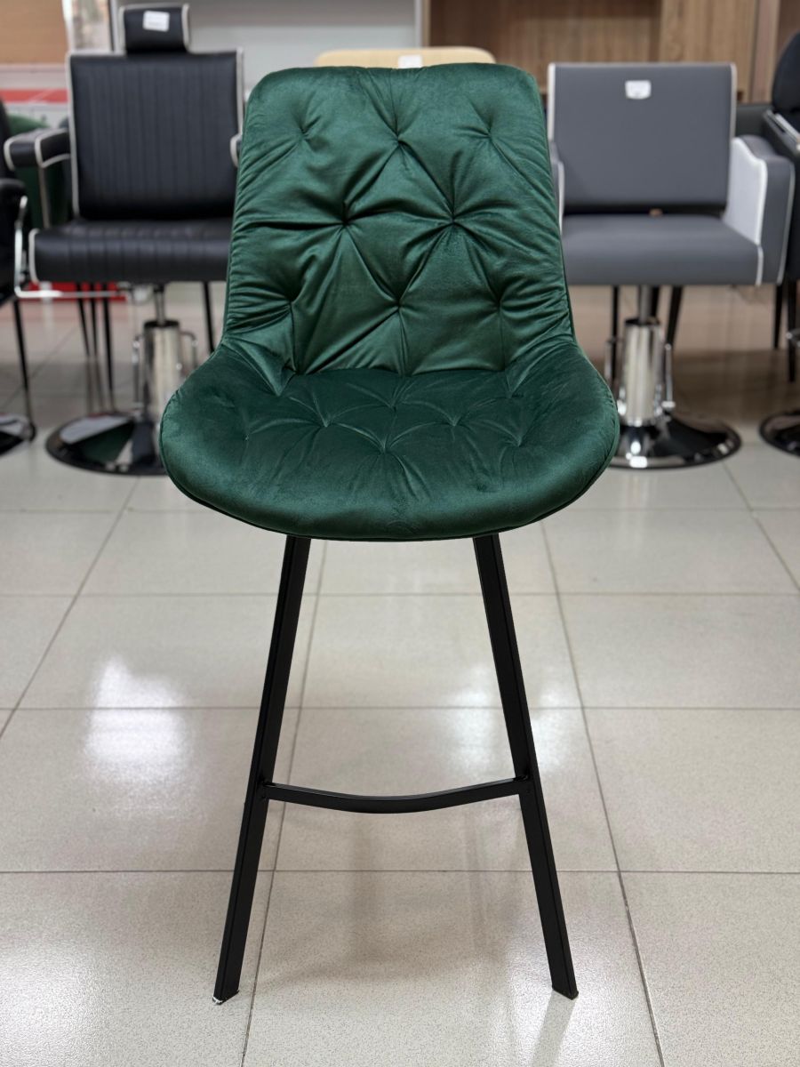 Читать все статьиСтул барный «Arona» зелёный велюр на барных металлических ножках