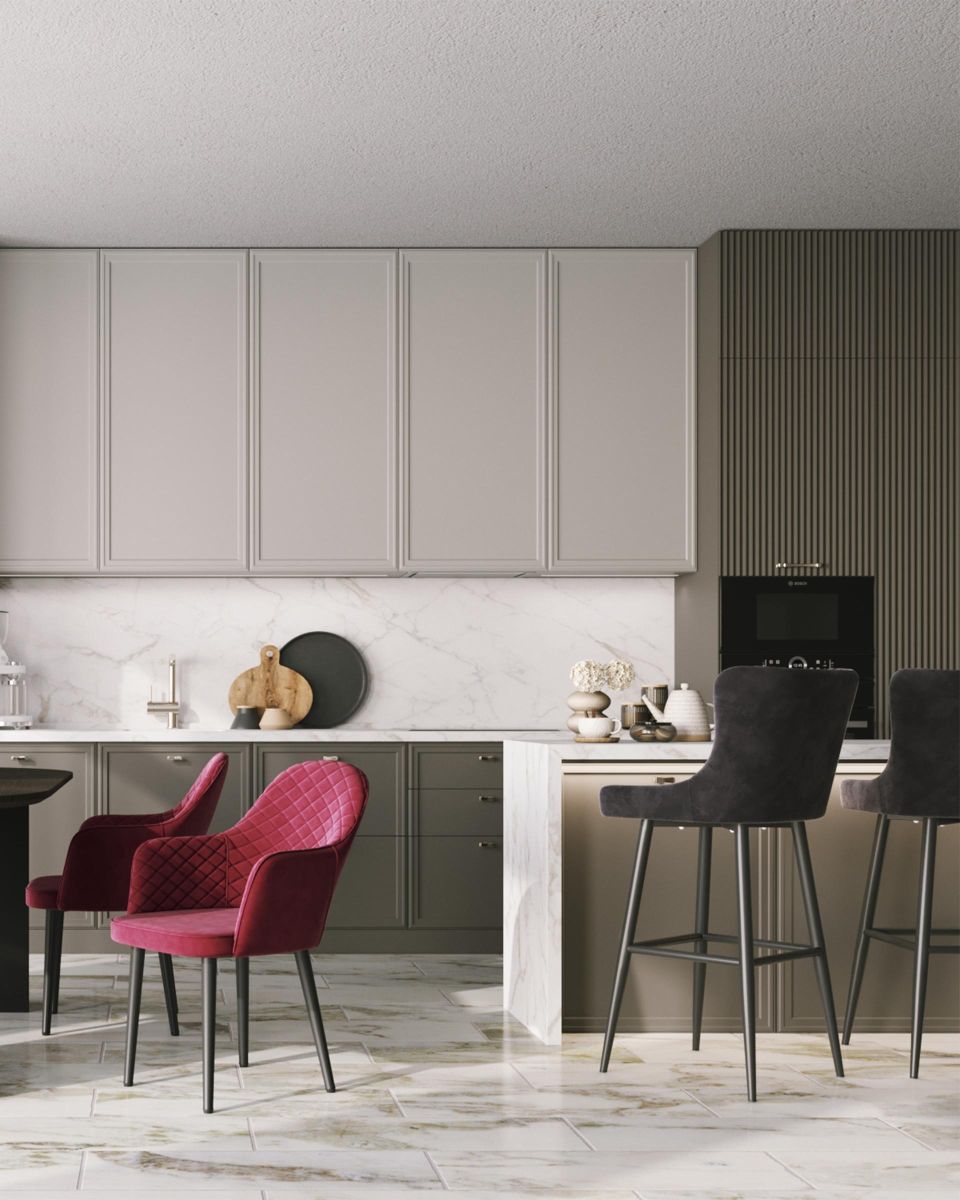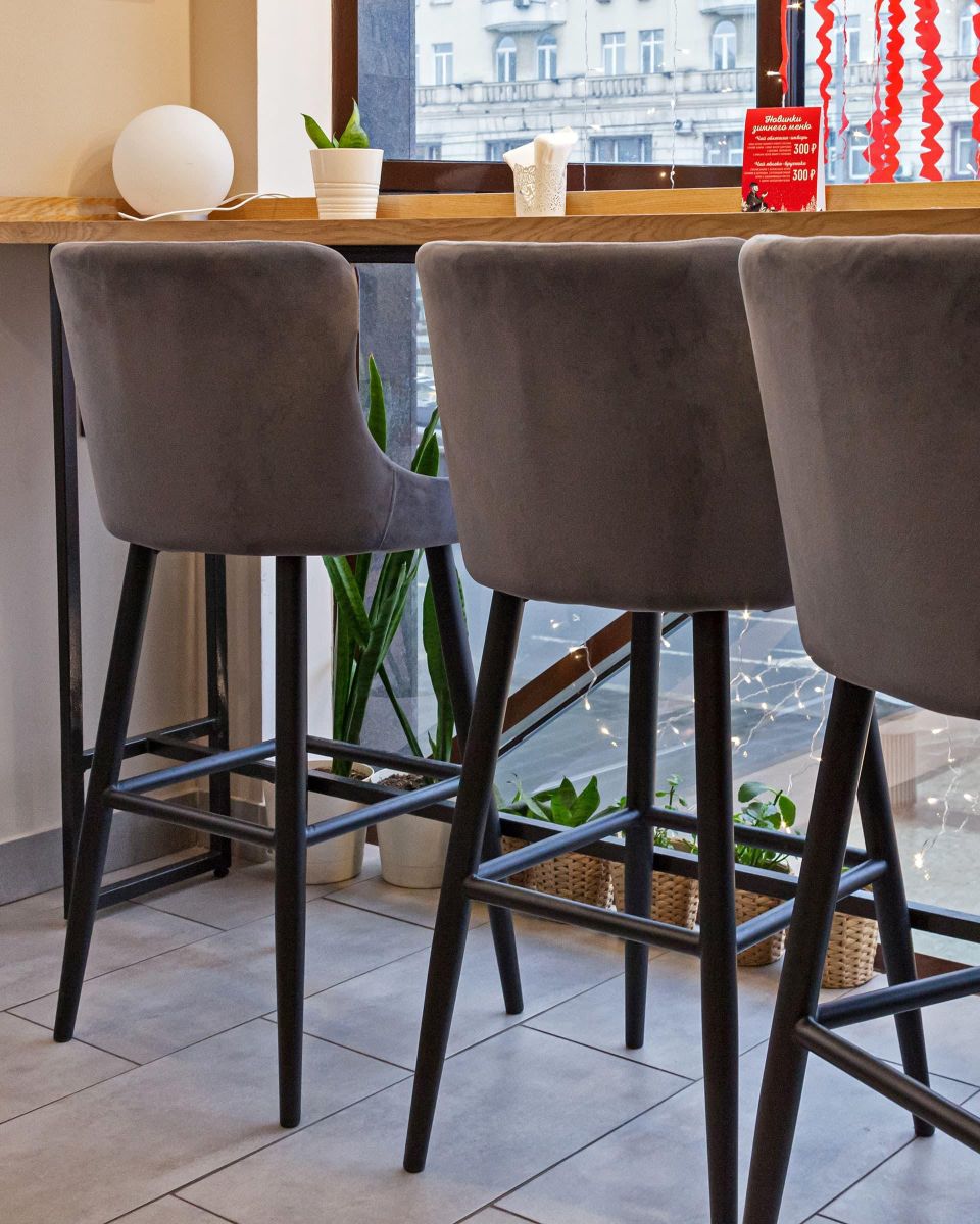 Читать все статьиСтул барный «Bumbar» на металлических ножках велюр тёмно-серый