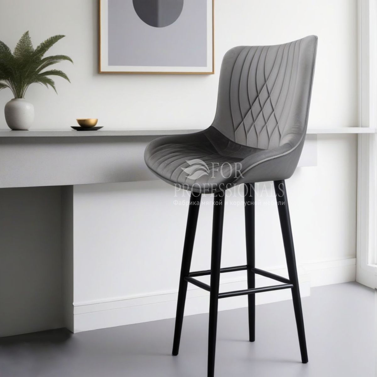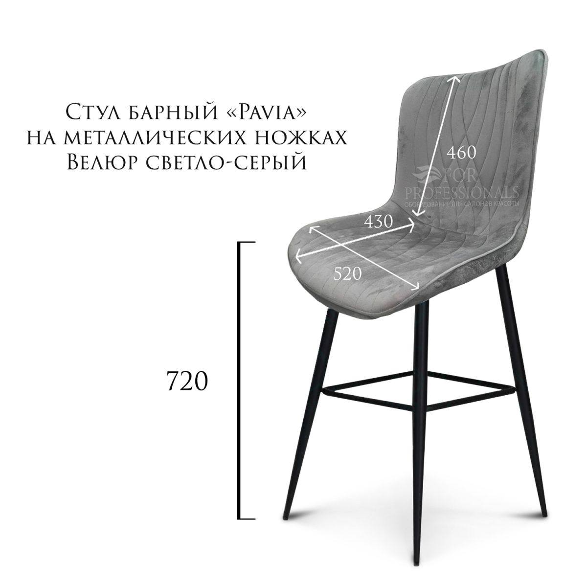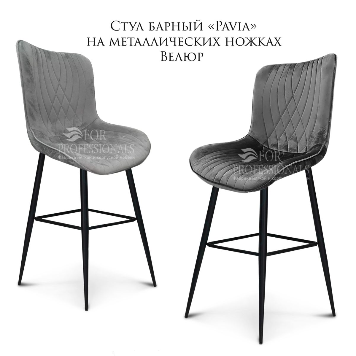 Читать все статьиСтул барный «Pavia» на металлических ножках велюр светло-серый