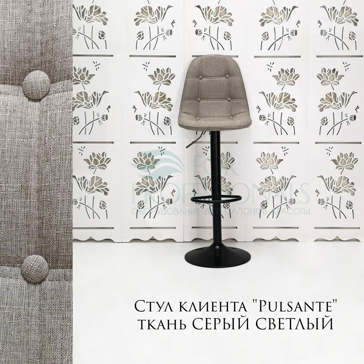 Читать все статьиСтул барный «Pulsante» ткань светло-серый на черном диске