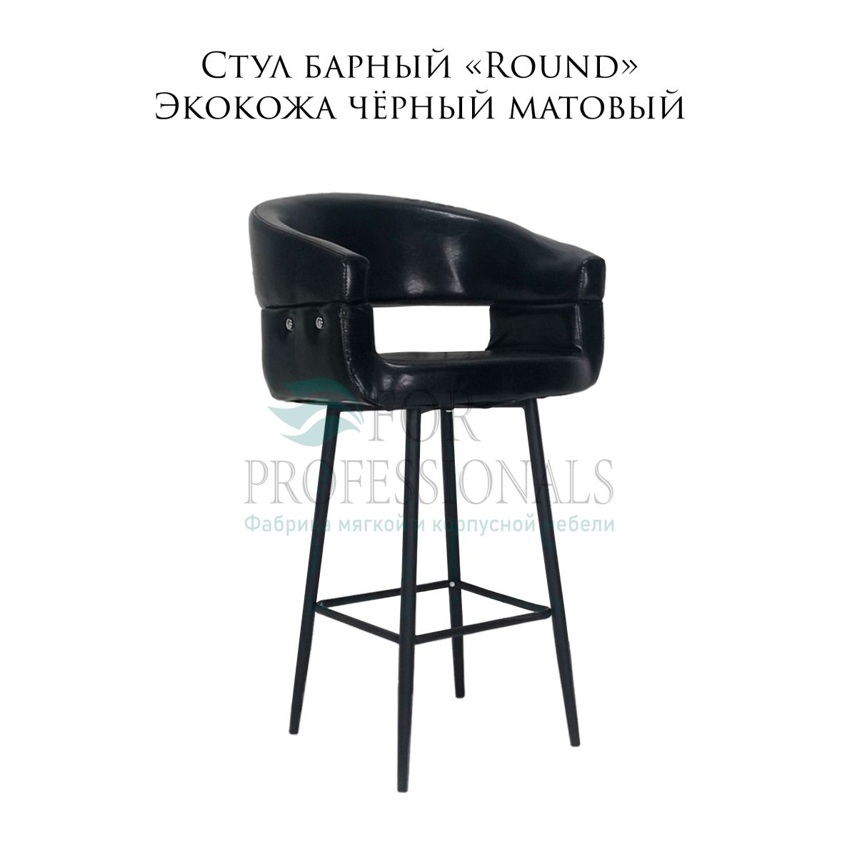 Читать все статьиСтул барный «Round» экокожа чёрный матовый на металлических ножках