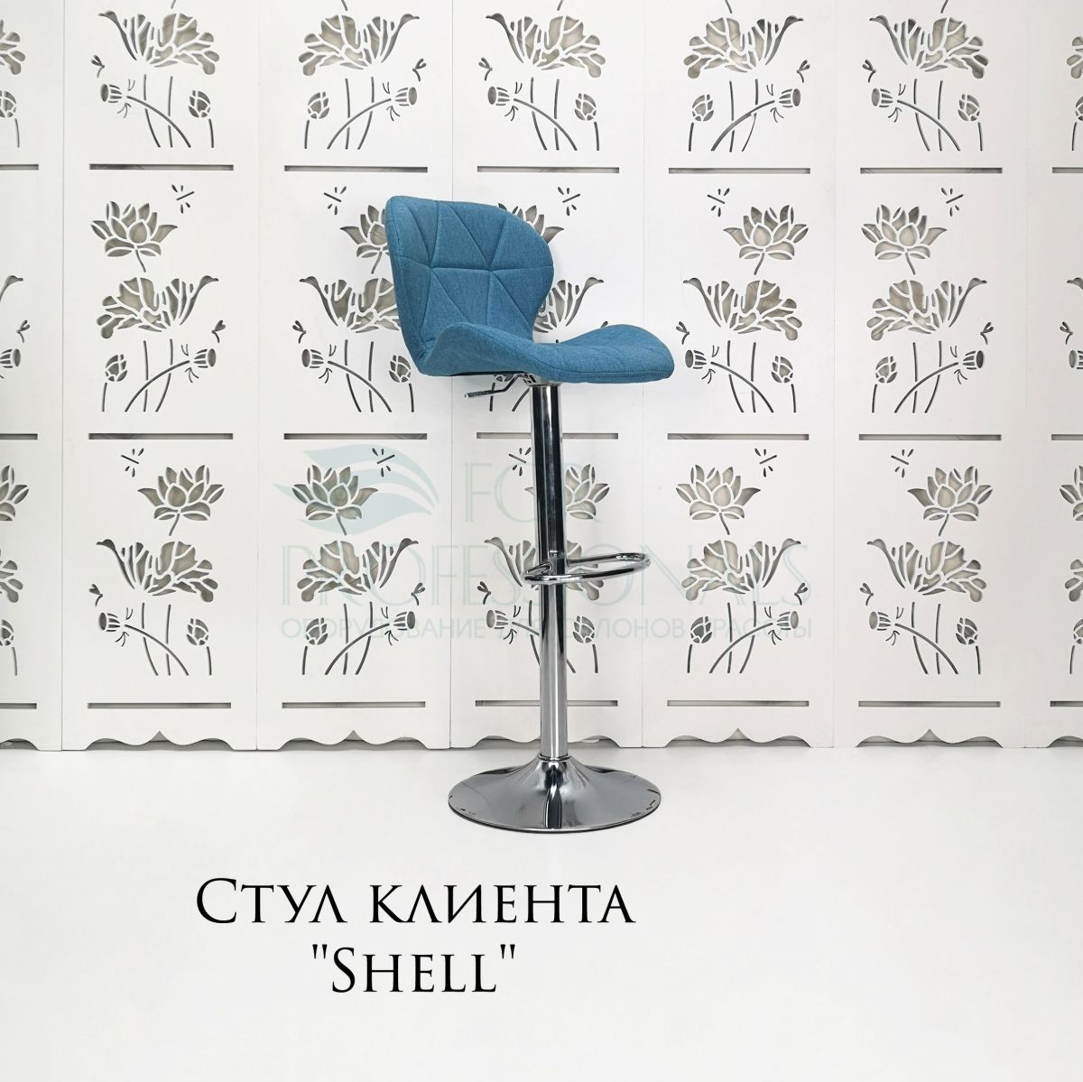 Читать все статьиСтул барный «Shell» ткань голубой на хромовом диске