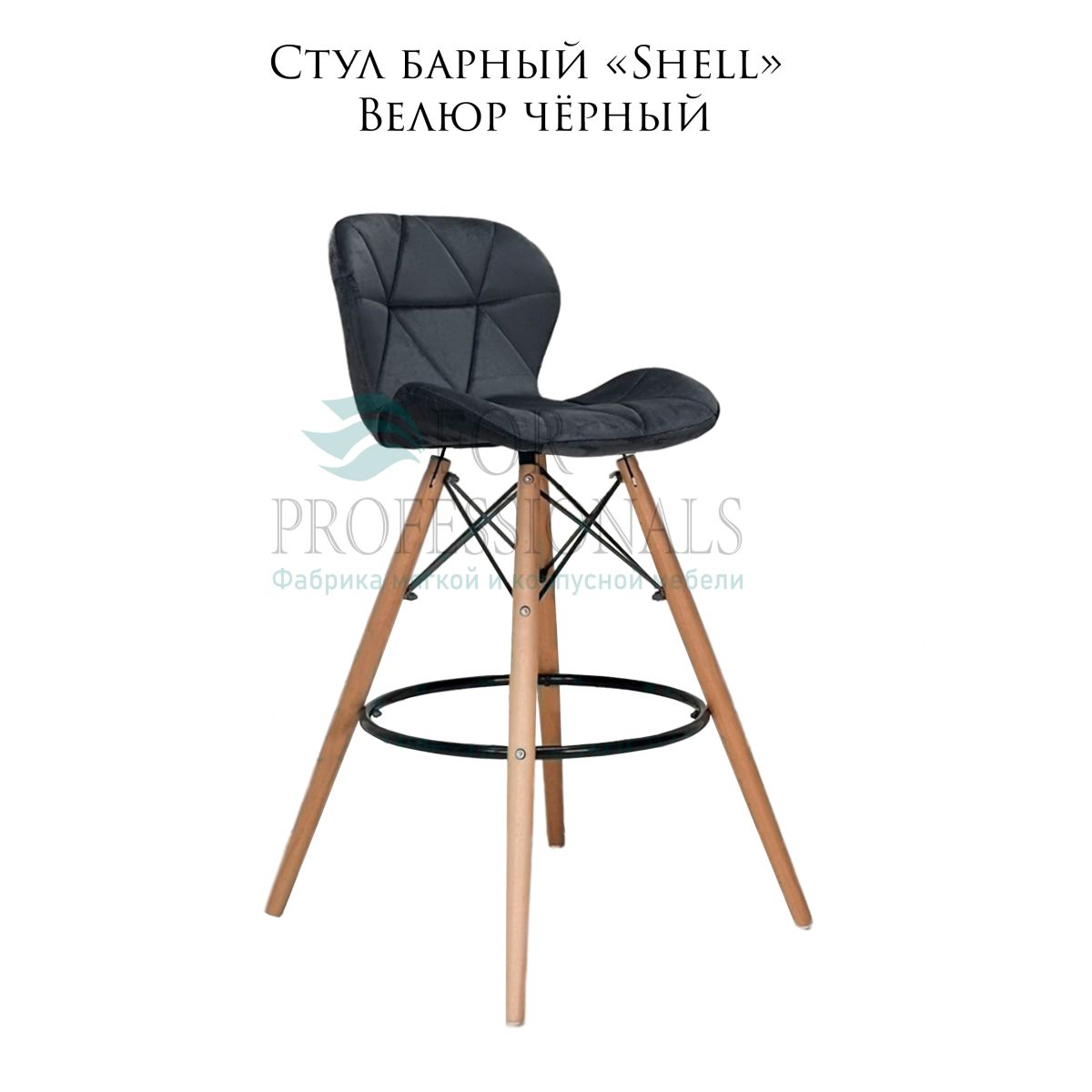 Читать все статьиСтул барный «Shell» велюр чёрный на деревянных барных ножках