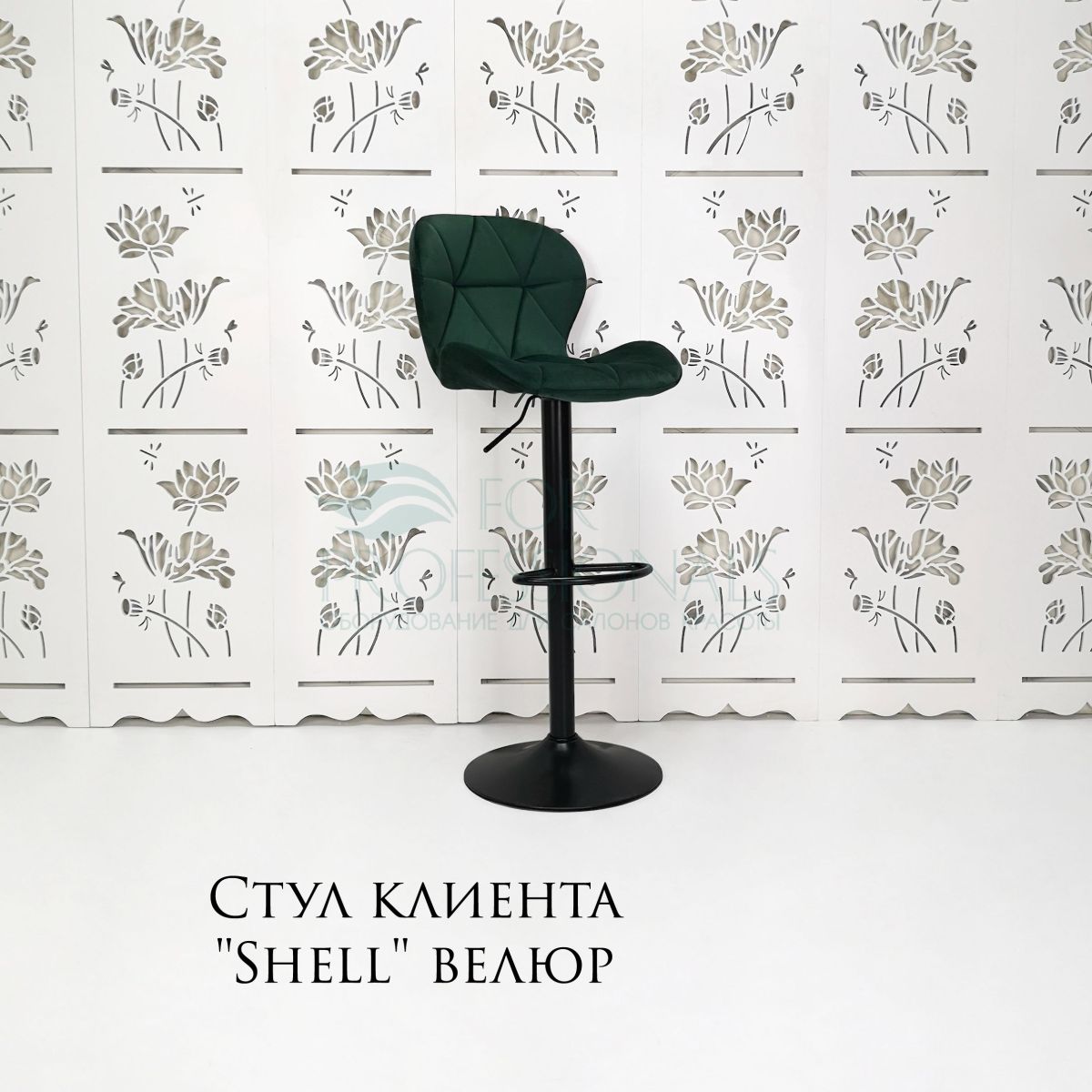 Читать все статьиСтул барный «Shell» велюр изумрудный на черном диске