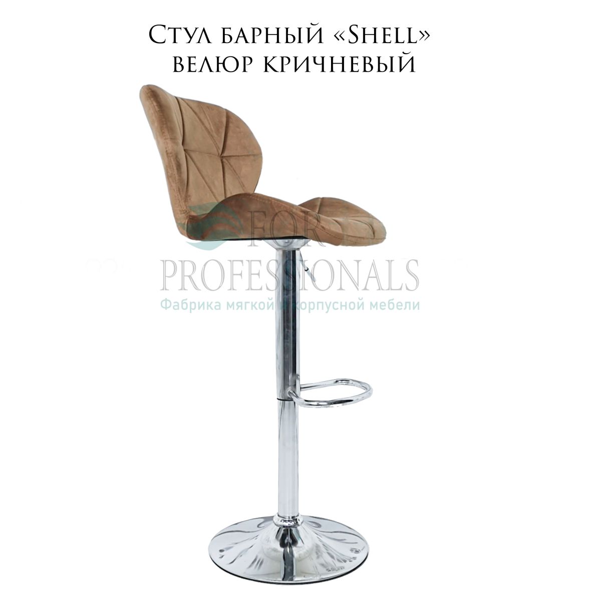 Читать все статьиСтул барный «Shell» велюр коричневый на хромированном барном диске