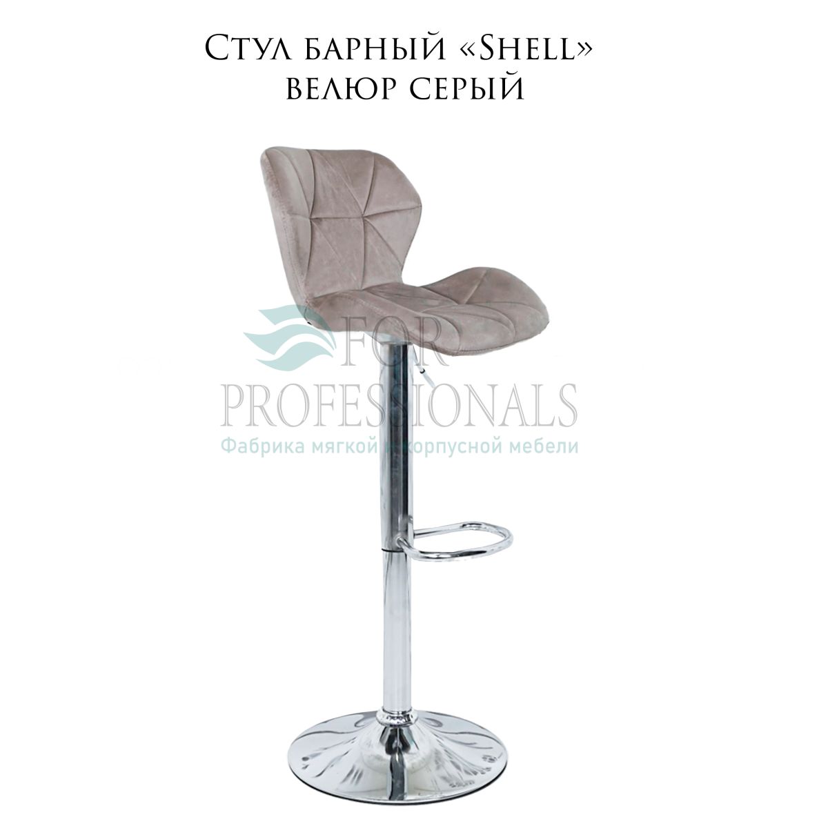 Читать все статьиСтул барный «Shell» велюр серый на хромированном барном диске