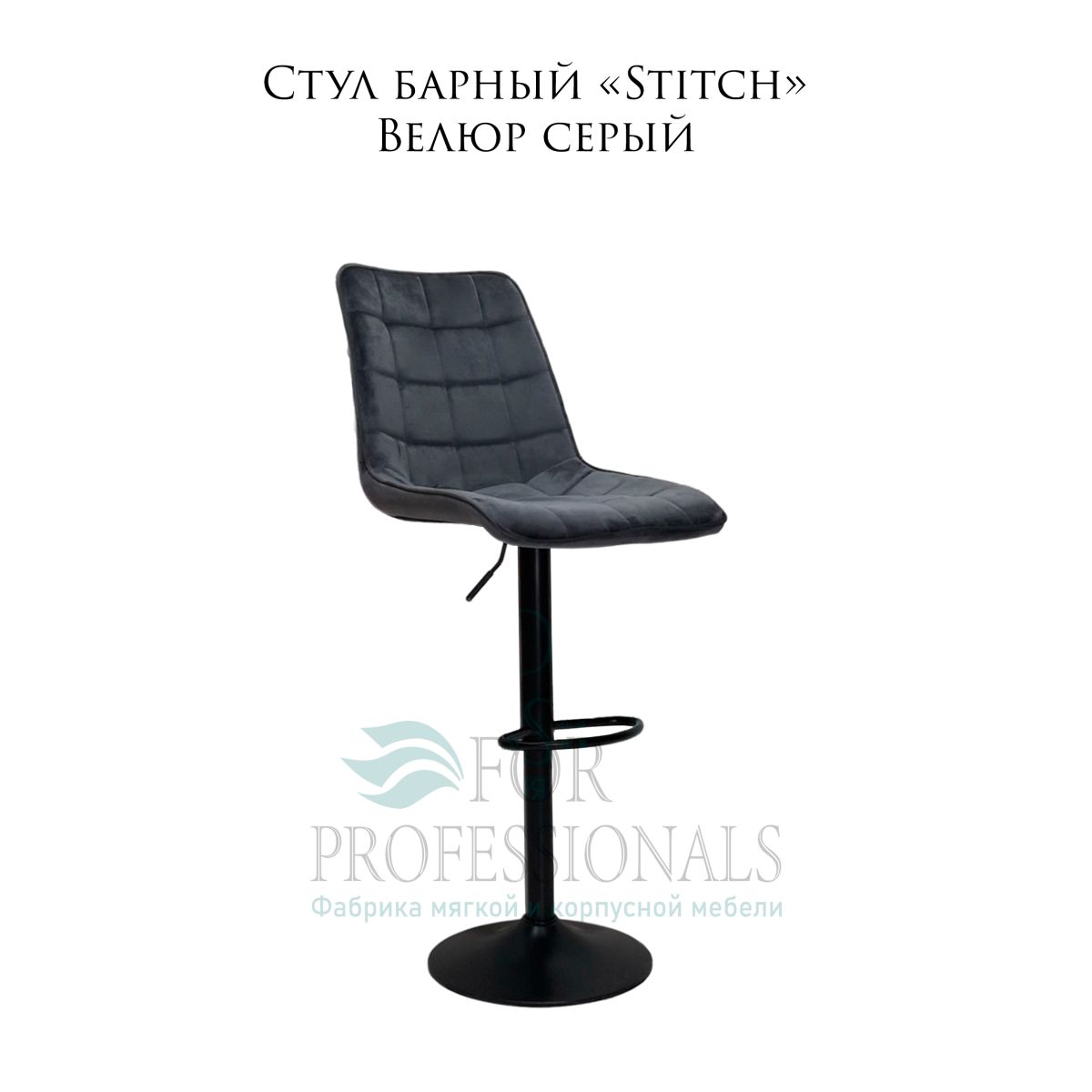 Читать все статьиСтул барный «Stitch» велюр серый на чёрном барном диске