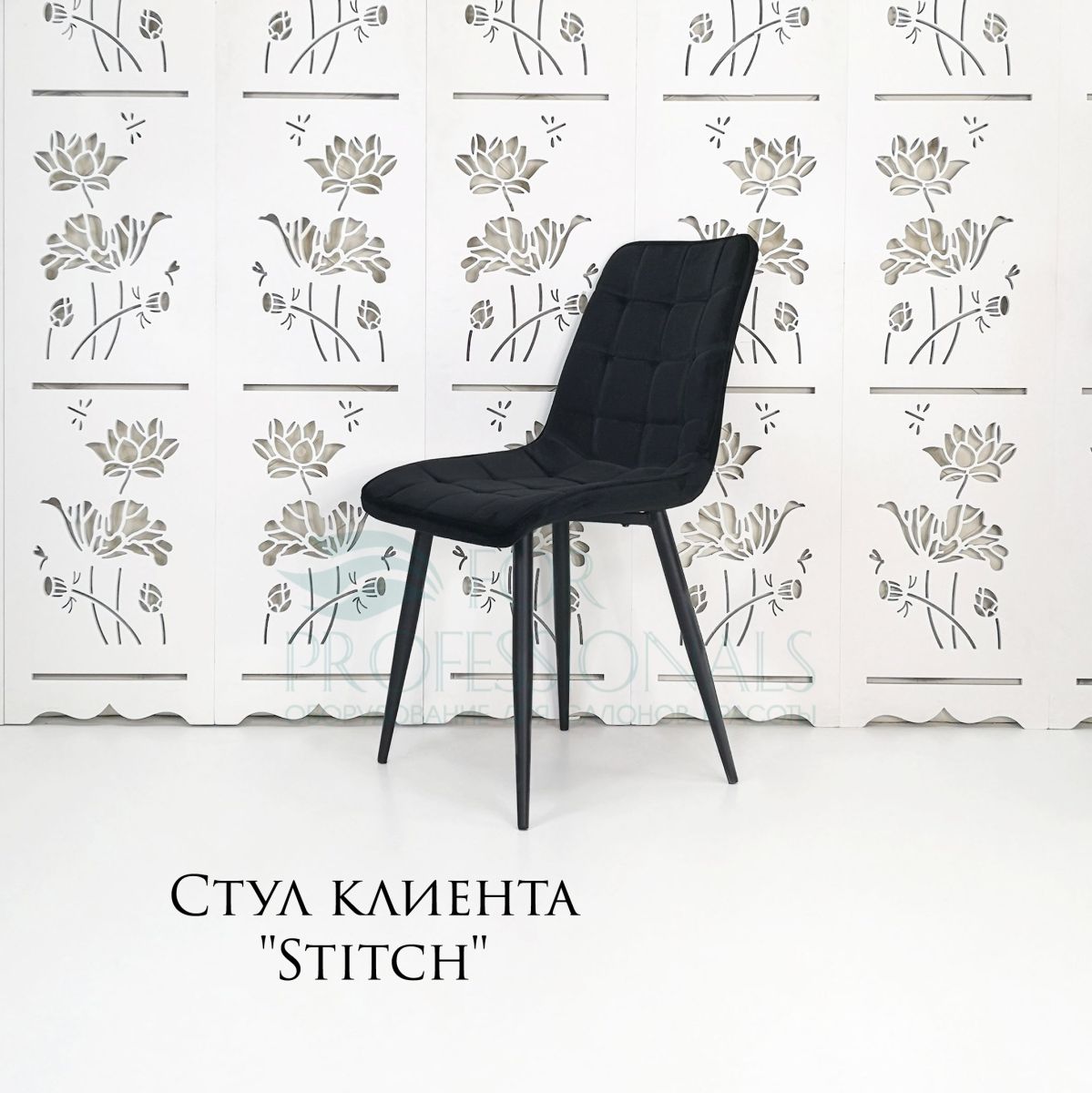 Читать все статьиСтул клиента «Stitch в клетку» велюр черный на конусных ножках