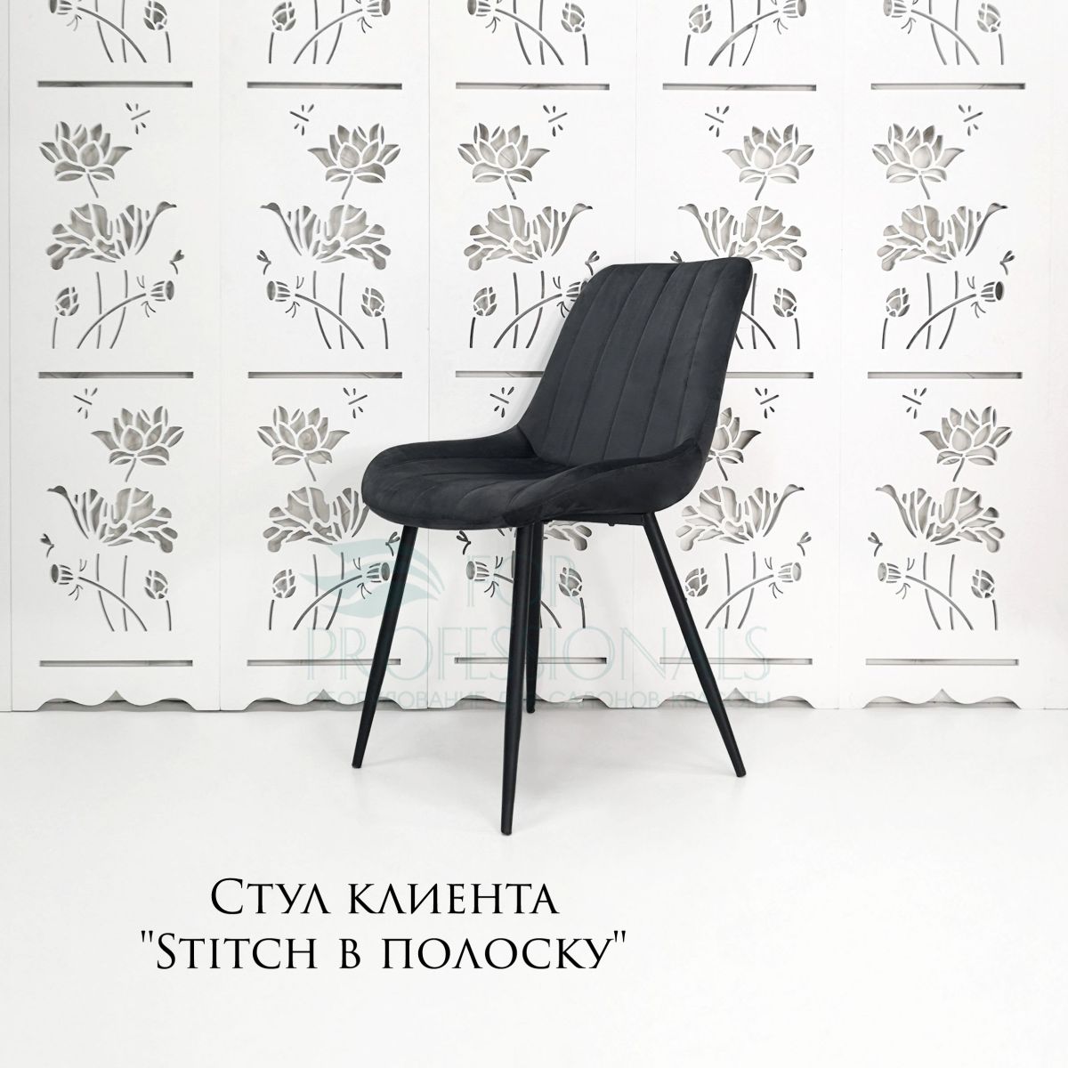 Читать все статьиСтул клиента «Stitch в полоску» велюр черный на конусных ножках