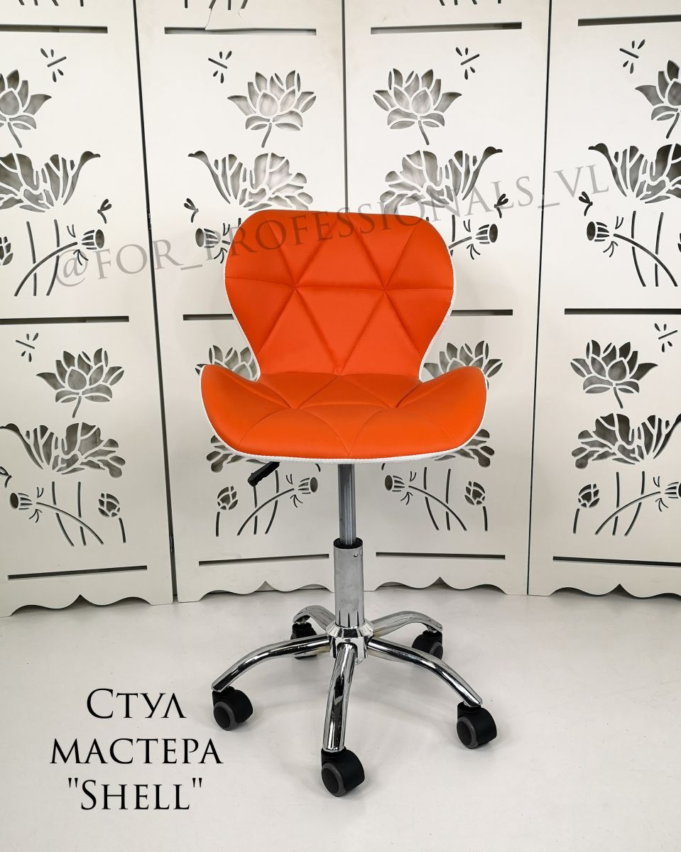 Читать все статьиСтул мастера «Shell» экокожа оранжевый + белый на хромовом пятилучьи