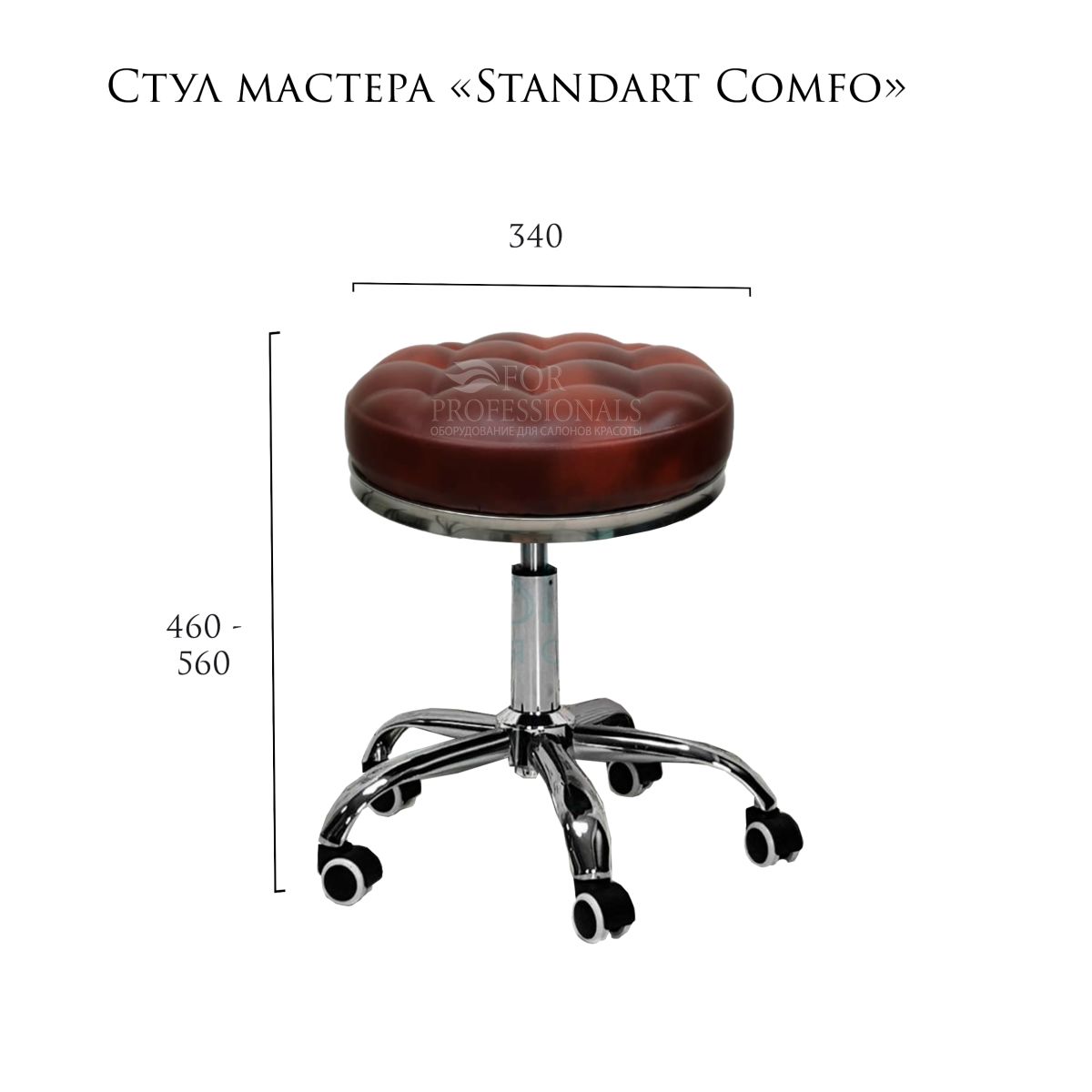 Стул мастера «Standart Comfo» на хромированном пятилучье гарантирует удобство и комфорт во время работы. Высота стула регулируется, позволяя подобрать оптимальную, в зависимости от индивидуальных предпочтений, или необходимости. Упругое сиденье поворачивается, что позволяет быстро менять положение во время работы, а хромированное пятилучье обеспечивает стабильность и прочность конструкции. Кроме того, стул легко мыть и перемещать по салону.