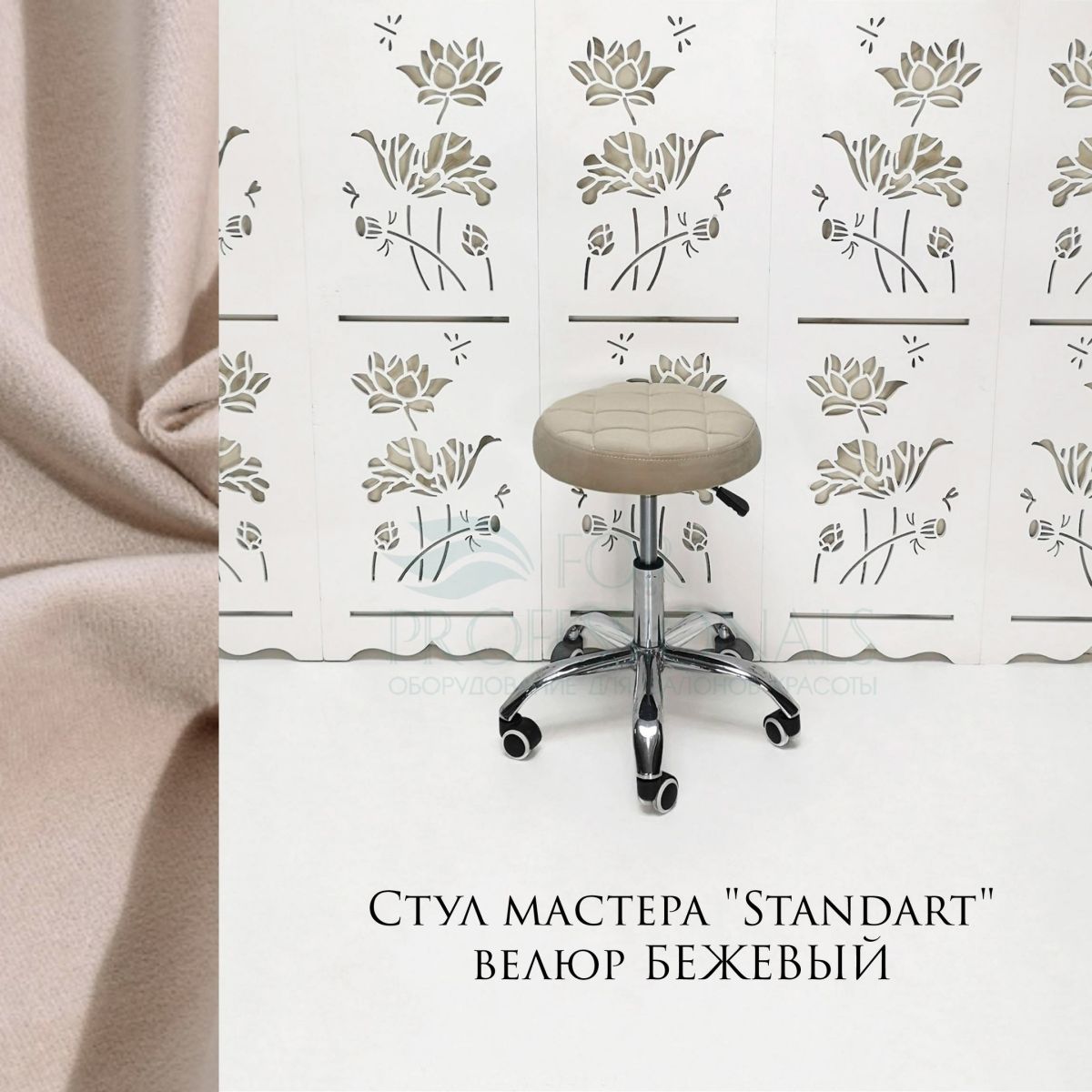 Читать все статьиСтул мастера «Standart» велюр бежевый на большом хромированном пятилучии