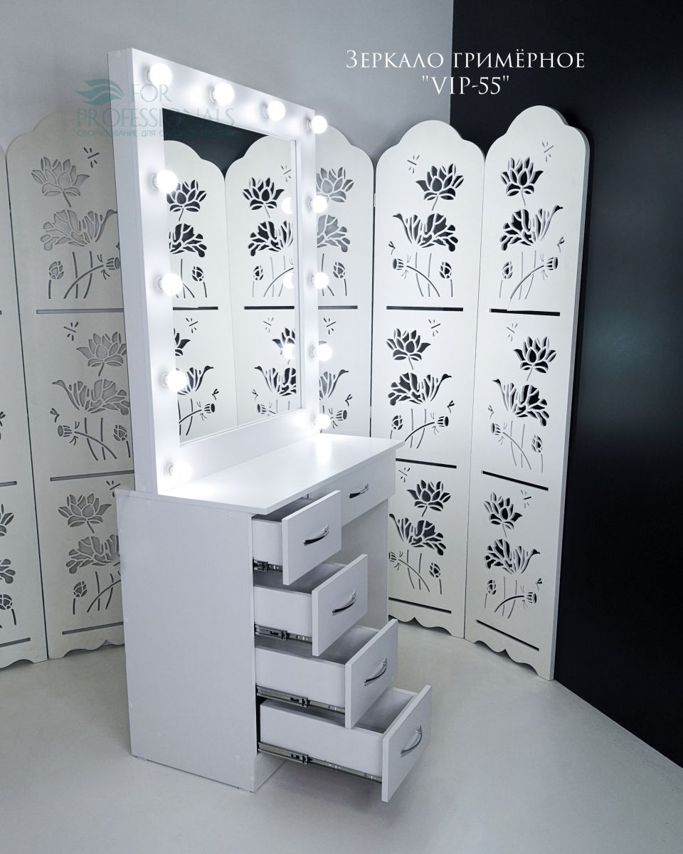Читать все статьиЗеркало гримерное «VIP-55» Белый Шёлк (13 ламп) левый